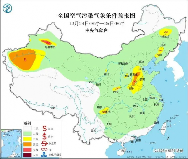 与此同时,长三角区域、珠三角区域、华中区域和西南区域等地大气扩散条件相对较好,无明显霾天气。其中,长三角区域在24日起,区域中北部等地有轻至中度霾天气。