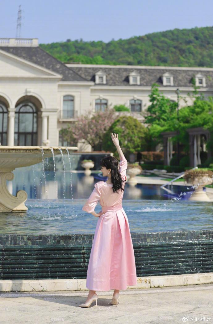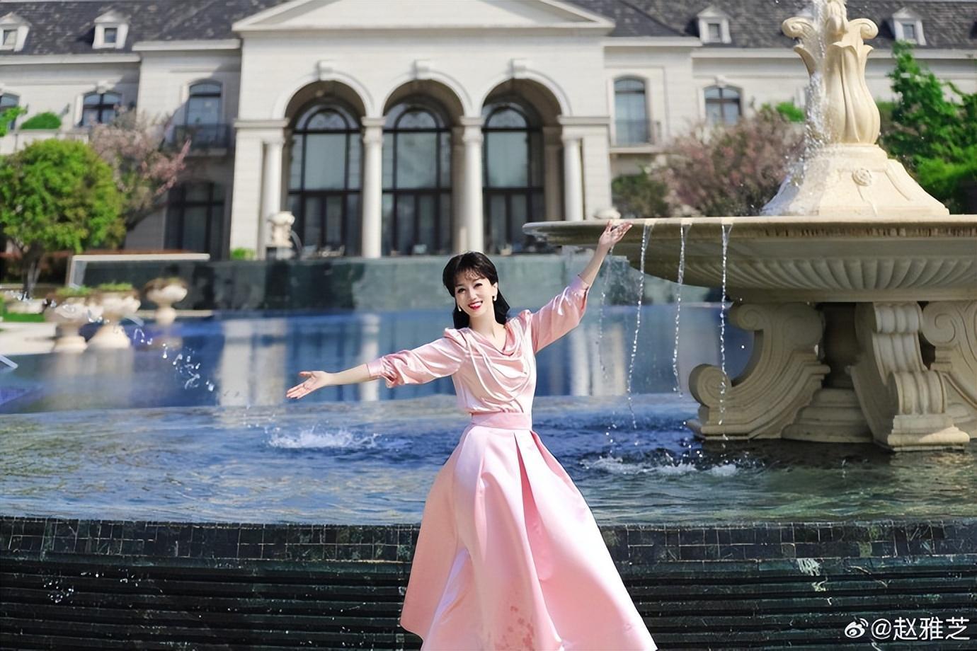 赵雅芝时而牵起裙摆在水池前凹造型,时而又背影出镜凹出舞蹈姿势,每一帧都美得让人移不开眼。