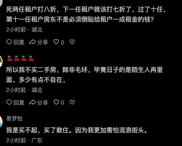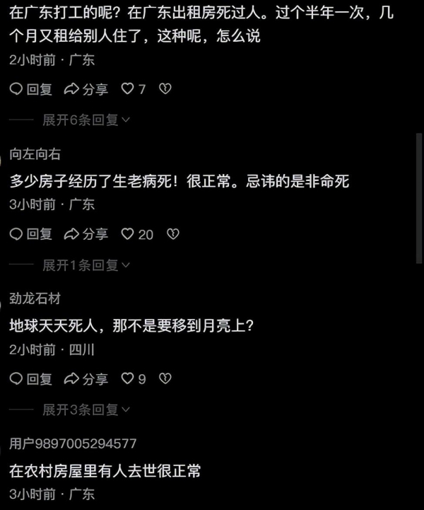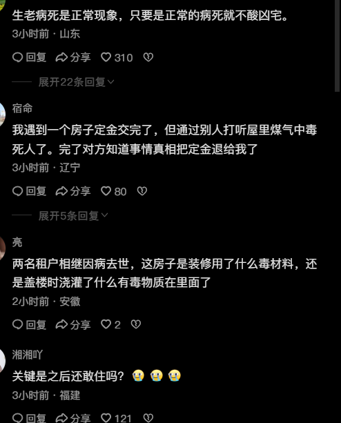我就租到过死过人的房子 之前不知道 后边住了快一个月 不对劲才问房东的 开始他还不承认呢
