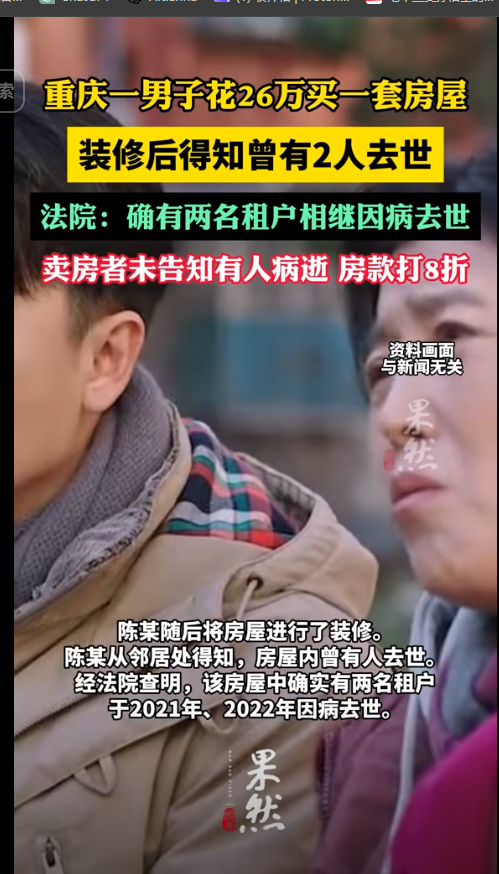 陈某随后将房屋进行了装修陈某从邻居处得知,房屋内曾有 人去世经法院查明,这房屋中确实有两名租户于2021年、2022年因病去世。法院审理认为,