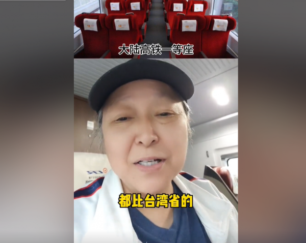 "在我们祖国,(大陆)高铁那是世界闻名的,一等座都比台湾省的高铁商务座还要舒服,欢迎大家回自己家来看看。"