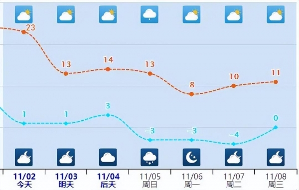 预计3日早晨到4日早晨,坝上地区最低气温下降8~14℃,其他地区下降4~6℃。