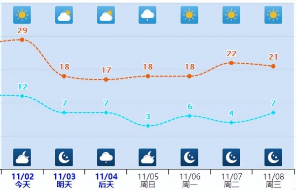 比如邯郸从29℃到18℃,邢台从26℃到16℃,累计降幅将达10℃左右。