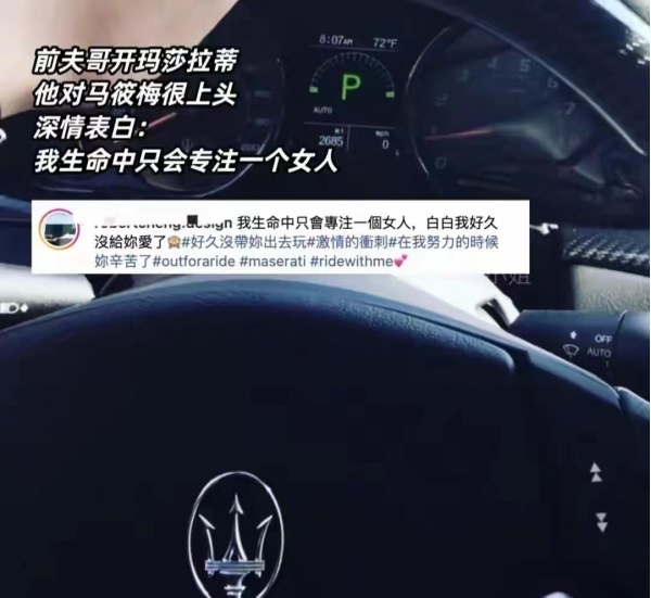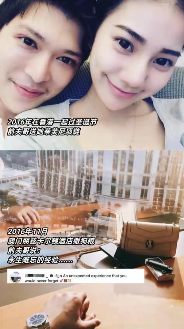 2016年,马筱梅的前夫就带她去香港、澳门和泰国等地旅游,一路上买买买,还送了她蒂芙尼项链。前夫哥开的是玛莎拉蒂豪车,还发文跟马筱梅深情表白"我生命中只会专注一个女人"。
