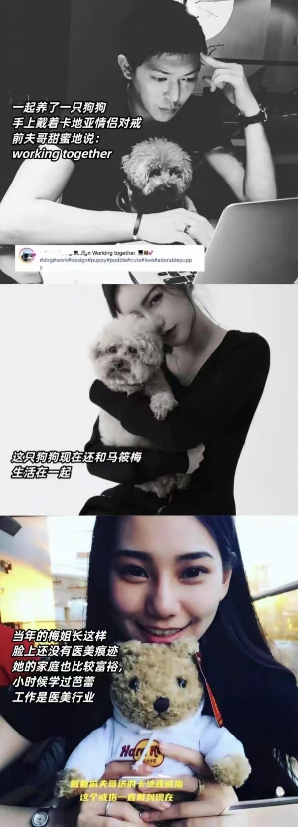 甚至有人爆料,马筱梅至今还戴着和前夫哥相爱时的定情信物卡地亚情侣对戒,他们一起养的狗狗,至今还跟马筱梅生活在一起。
