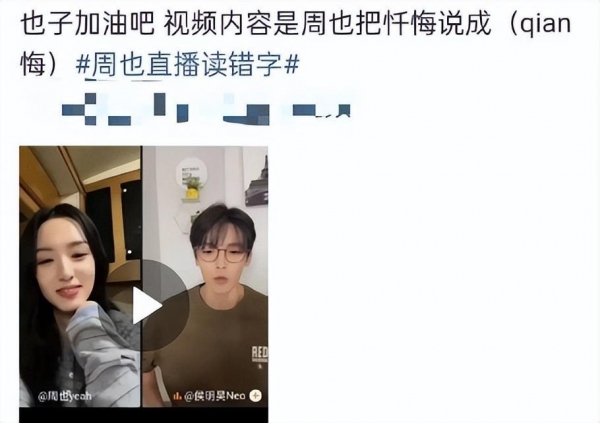 更离谱的是,她连台词都说不清楚,需要文替来帮忙背诵。周也曾经把"忏悔"读错成了"qian悔",可见她在文化素养上确实有待提高。