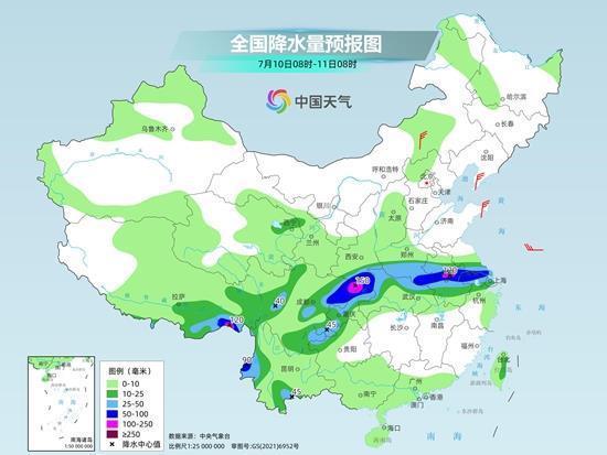 今天开始至13日,四川盆地的强降雨还将维持,但强降雨带东段将会发生变化,强降雨落区将向南转移至江汉、江淮、黄淮南部等地。