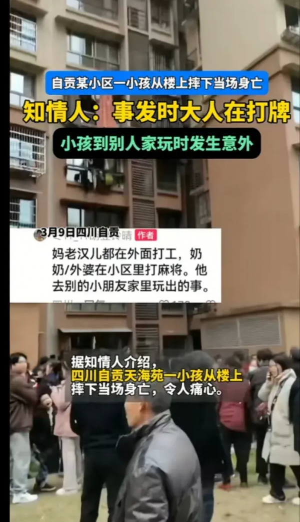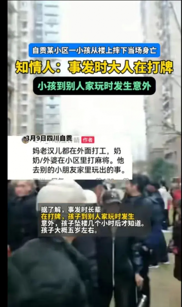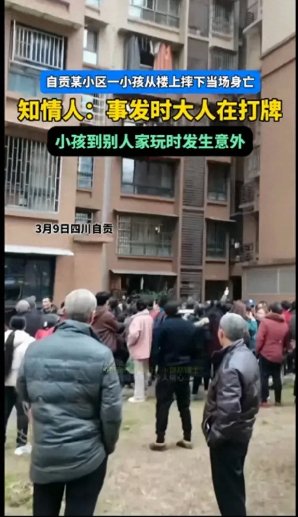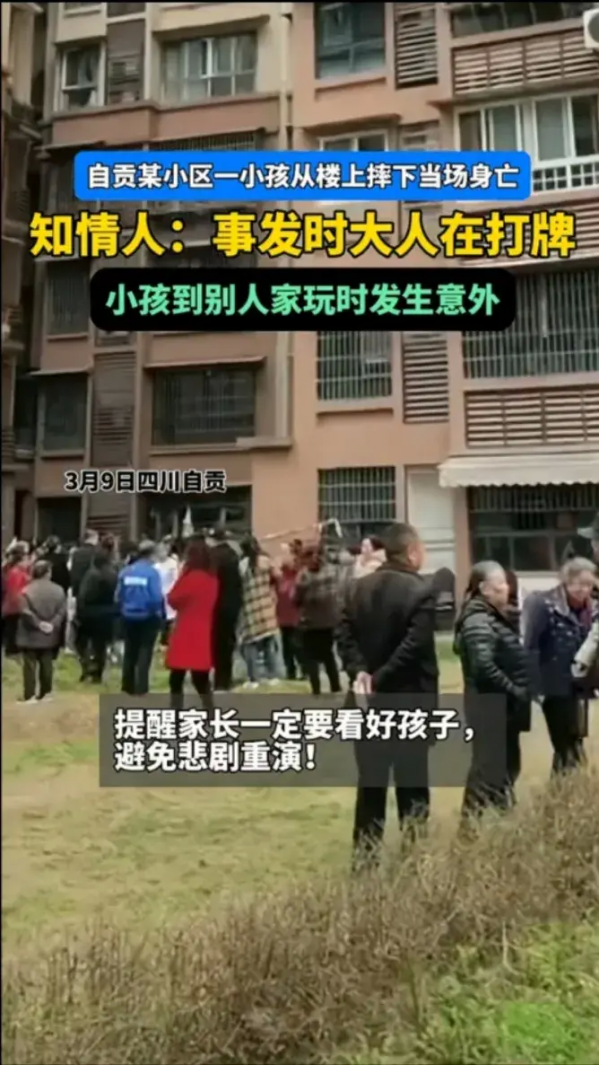 四川自贡某小区孩子坠楼身亡,大人据称在打麻将