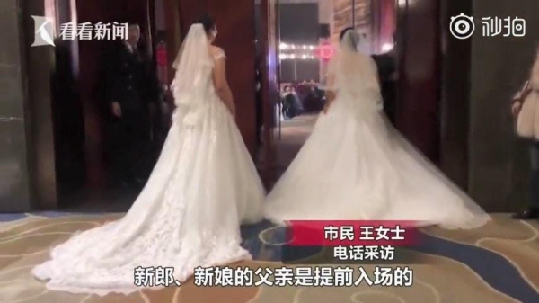 2月17日这天,西安的一对新人举办婚礼。新郎新娘的父亲站在会场中央,等待新人进场,没想到进场的不是儿女,而是妈妈们。两位妈妈都穿着婚纱,在宾客的掌声中缓缓走到另一半身边,那场面让人很感动。