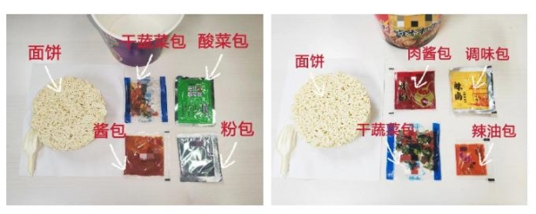 我们先看面饼,面饼分为油炸和非油炸两种。油炸的面饼基本上都是经过高温油炸后脱水硬化,含水量很低。非油炸的面饼用到的则是热风、微波和真空等工艺,使得面饼脱水干燥。