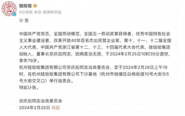 2月22日,一则消息震惊了商业界:娃哈哈的创始人宗庆后,这位曾经的市场风云人物,在浙江大学医学院附属邵逸夫医院的ICU病房接受救治。
