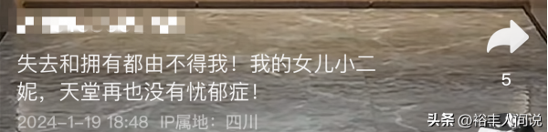据小二妮的妈妈透露,小二妮是因为抑郁症去世的,至于过程,她并没有透露,不过从其好友分享的动态来分析,小二妮应该是因为抑郁症想不开,所以选择自杀,虽然被发现的及时,但还是没有能抢救回来。