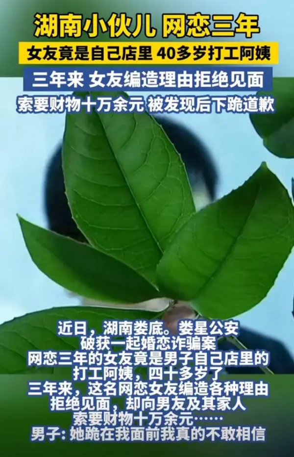 如您所见,这起案件给人的启示和影响远超乎表面。让我们共同呼吁,保护好年轻人的婚恋权益,维护社会的和谐稳定。欢迎您在下方留言,分享您的看法和建议。让我们携手共创一个更加安全、健康的网络环境!#湖南小伙网恋三年,"女友"竟然是店里四十多岁打工阿姨