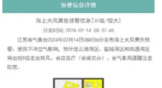 与此同时,江苏省气象局还发布了海上大风黄色预警。据预报,未来几天,江苏省沿海地区将受到一股强冷空气的影响,海上风力将达到8-9级,阵风甚至可能超过10级。这种强烈的海上风力对于海上作业、航行等活动将带来极大的风险。