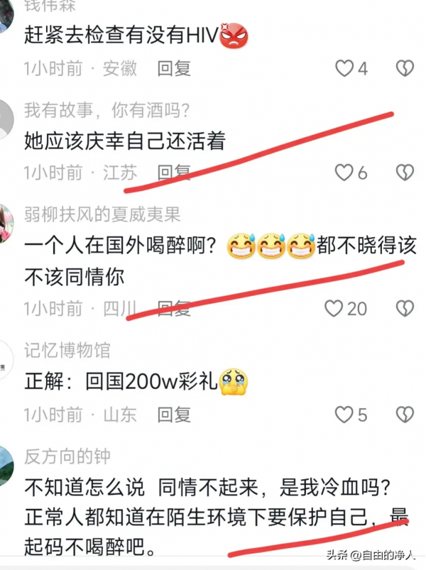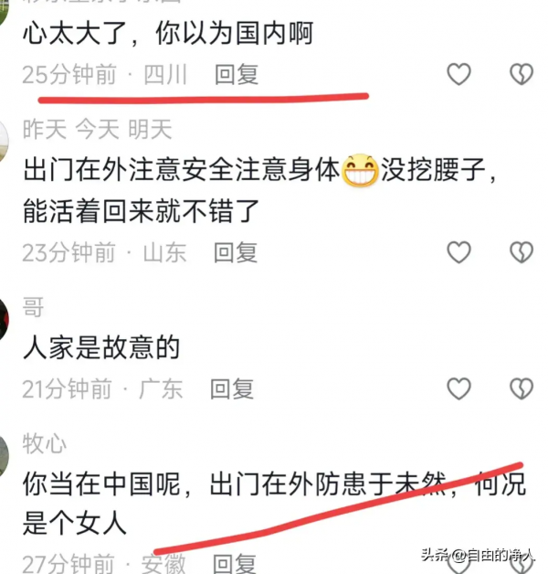 也有网友说,心太大了,你以为这是在国内吗?出门在一定要防患于未然,何况还是个女人。