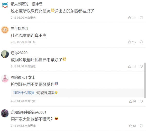 谁知,事情到此还没有结束,她的视频被一男子看到,便联系上他,称这些东西是其女朋友误丢的,希望陈女士及时归还,若不归还,他则会采取报警处理。陈女士也与其核实,发现东西真是他丢的,可谓是空欢喜一场,于是决定第二天去银泰城将物品归还。但不少网友表示,失主的态度也太恶劣了,换其就扔回垃圾桶去了,也有网友表示,捡了这么贵重的东西还是要低调,不要到网上炫耀的好。