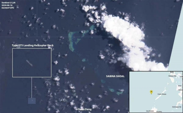 社交媒体爆料称,075两栖攻击舰"广西"舰是于当地时间6月16日抵达仁爱礁水域,然而巧合的是,次日据路透社报道称,美菲日加四国将在所谓西菲律宾海专属经济区内举行联合军演,为期两天。