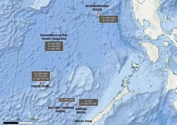 聚焦本轮中菲南海冲突,我方在舰船部署上显然改变了以往传统,转而采用了一种全新的战术,即"海警一线,渔船二线,军舰三线"。以目前的仁爱礁为例,根据卫星图片可知,数十艘渔船分布在仁爱礁水域内外,海警船则抵近一线,此前被菲律宾媒体多次提到的若干056/056A轻型护卫舰则坐镇后方。