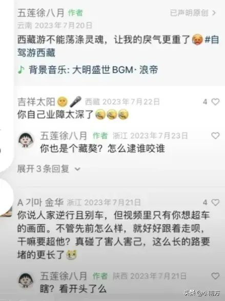 西藏游时徐老太也曾发布二次剪辑视频,网友在视频中发现徐老太超车,却说别人逆行且别车,面对网友好心提醒,她却牙尖嘴利,实在不敢恭维!!!