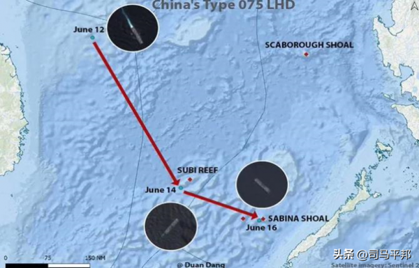外媒报道的075两栖攻击舰卫星图航行轨迹