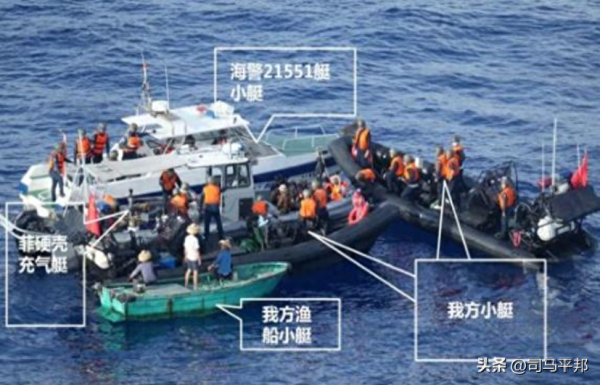 目前菲律宾在仁爱礁和仙宾礁两处出击,动作越来越大。从前两天中方反制挫败菲律宾非法给"马德雷山"号进行补给而收缴的物资看,菲律宾方面已经开始对这些事发岛礁运输武器弹药,这已经逐渐超出了海警的掌控。