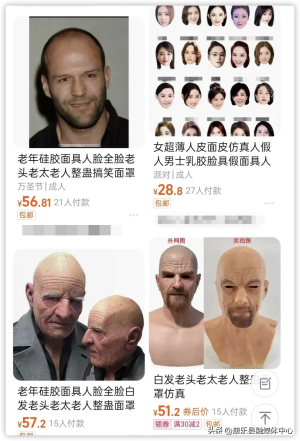 甚至有商家宣称可提供面具、头套"私人定制"服务,核心卖点即"超逼真""仿真定制",价格根据面具复杂度和精细度而定,几千元至几万元不等,从下单到制作完成大约需要一个月的时间。