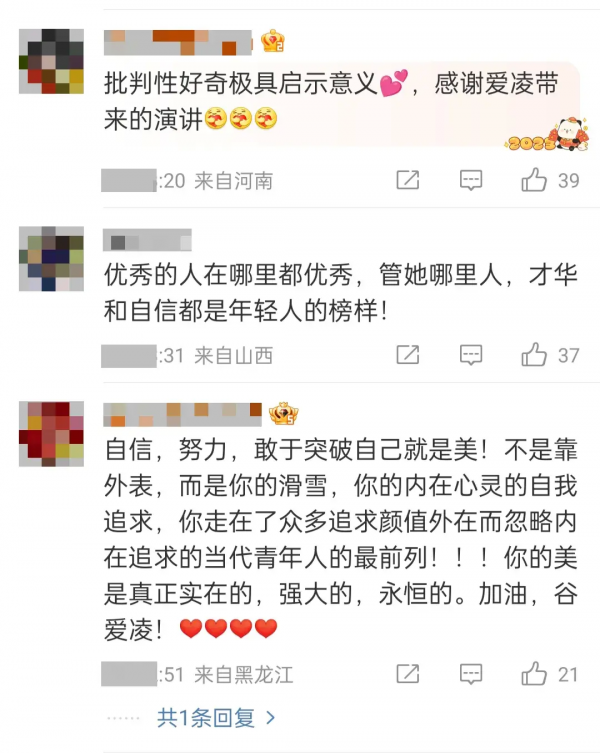 批判性好奇心极具启示意义,指谷爱凌说的:"批判性好奇心指的是能够在探索事物的过程中发展自我,此外对事物保持好奇的同时,也要有勇气去接受自己有时会出现一些错误,其实犯错并不是坏事。"可以看出优秀的人无论在哪里都是优秀的人,而你走在了众多追求颜值外在而忽略内在追求的人的前列!