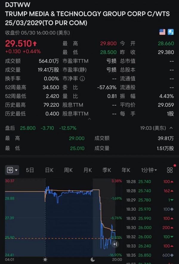 值得一提的是,或受此消息影响,截至发稿,Trump Media股价盘后下跌超12%。