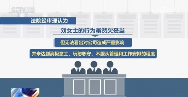 法院经审理认为,刘女士的行为虽然欠妥当,但无法看出对公司造成严重影响,并未达到消极怠工、玩忽职守、不服从管理和工作安排的程度。
