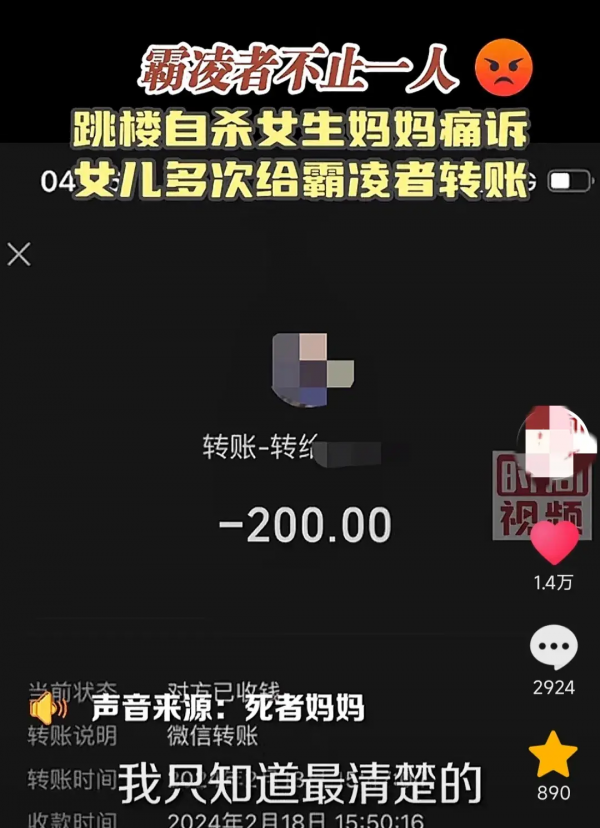 14岁女生长期遭霸凌跳楼身亡 聊天记录曝光,母亲爆出重要线索:女孩手机里有多条转账记录