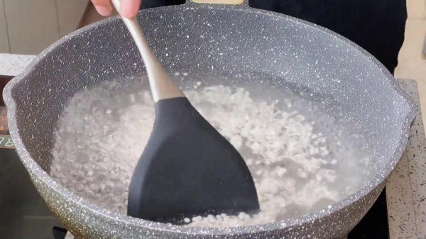 1、锅中水提前烧开,放入适量的西米,稍微搅拌一下,水要尽量放多一些,盖上盖子煮个20分钟可以了。