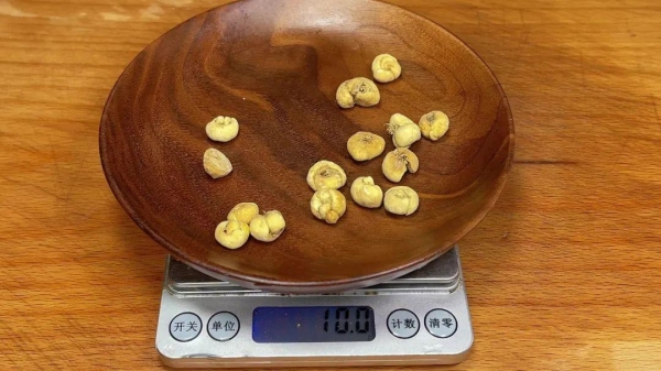4、准备10克川贝,川贝不要放太多,再把川贝放入帆布袋或者保鲜袋中,用工具给敲碎,再敲打成粉末状,越细越好。