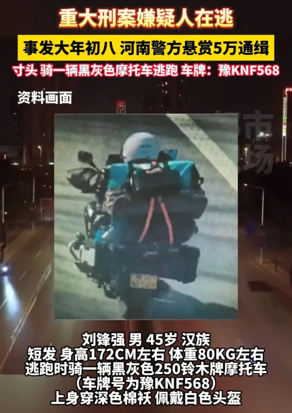警方表示,刘锋强目前仍处于在逃状态。据说他爱好骑摩托车,这给抓捕工作带来了不小的难度。毕竟,在广袤的河南大地上,想要找一个人,尤其是擅长骑摩托车的人,无异于大海捞针。