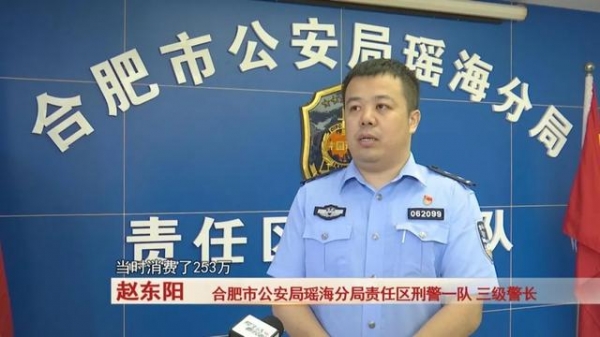 合肥市公安局瑶海分局责任区刑警一队 三级警长 赵东阳:两天的时间,在合肥三家金店,一共刷卡消费了610万,经过我们溯源均是涉诈资金。