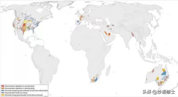 在研究人员整理的有历史数据的含水层系统中,竟然有16%的地下水从20世纪80年代和90年代的下降趋势发生了逆转。