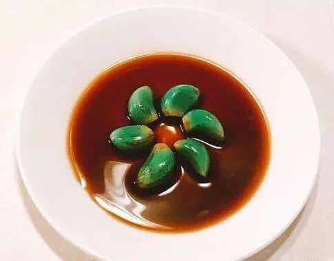 在我国北方泡腊八蒜也是"腊八节"的习俗之一,把蒜泡在醋中腌制蒜就会变得如同翡翠碧玉般通体碧绿