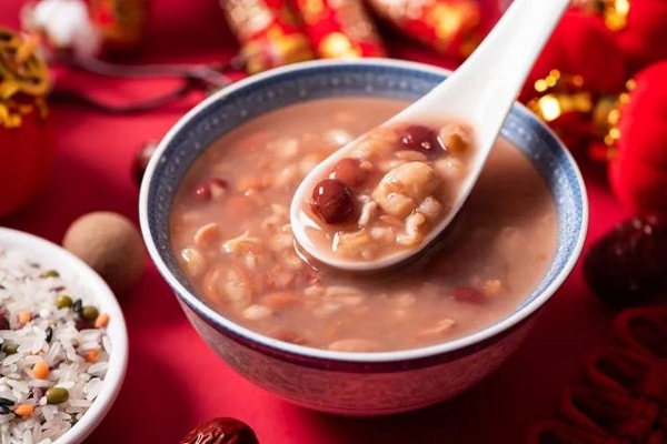腊八之日人们以八方食物合在一块和米共煮一锅,寄托着"合聚万物、调和千灵"的美好心愿,以前,在腊月初七的晚上家家户户就开始忙碌起来,人们将所用的原料仔细处理开火炖煮,满怀期待地沉沉睡去,到"腊八"这天清晨在香甜扑鼻的味道中苏醒,一整天的时光都变得甜蜜起来。