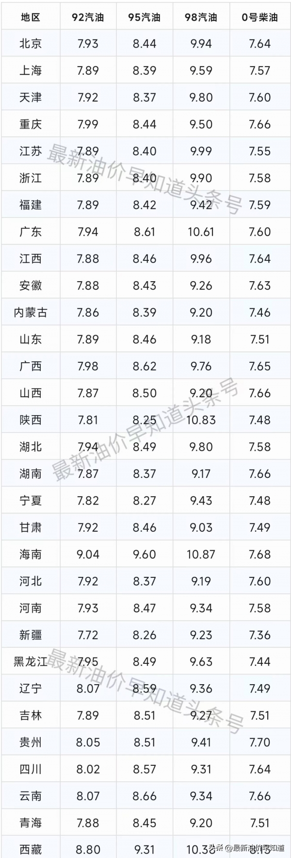从上面的油价列表可以明显的看出,在经过今年3次油价上涨后,目前95汽油早就超过8元时代了,98号汽油更是有些地方都超过10元/升。只有92号汽油除了像云南、四川等少数地区超过8元/升外,大部分地区还在8元以下,不过大体的价格也来到7.90元/升左右,距离8元时代可以说只有一步之遥。