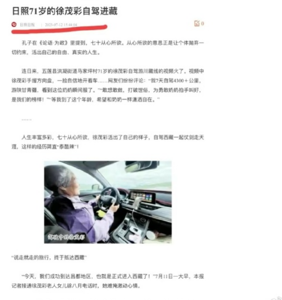 山东当地媒体曾经报道过这位女车主,因为她自驾车进藏的事迹。