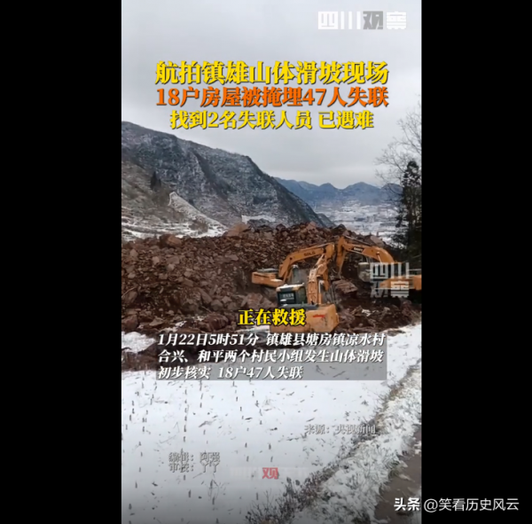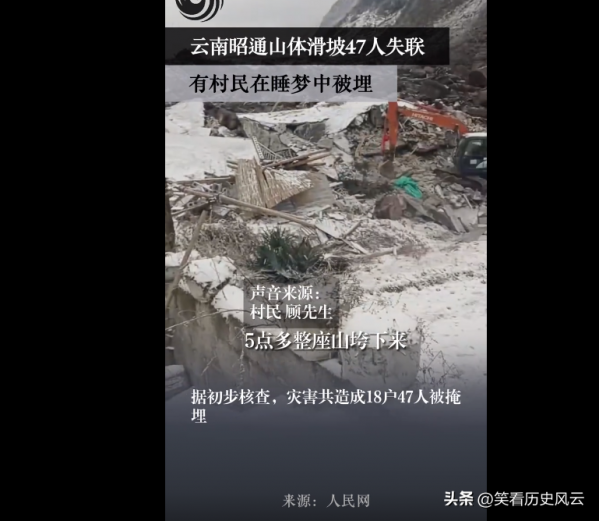 1月22日凌晨5时51分,大雪纷飞,当人们还在睡梦中时,云南昭通市镇雄县凉水村和兴、和平两村民小组突然发生严重山体滑坡。