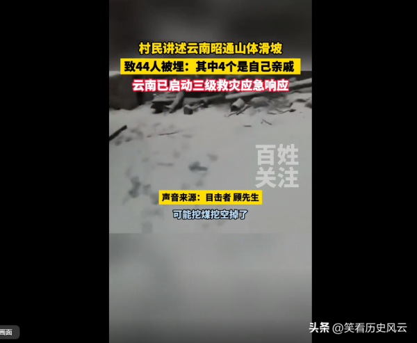 顾先生:山下面就是煤矿,可能是挖煤挖空了,本来那个山以前就是开裂的,村民怎么阻止都阻止不下来嘛。