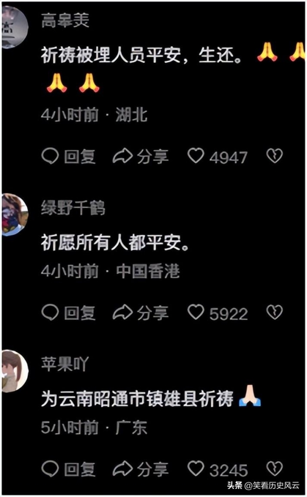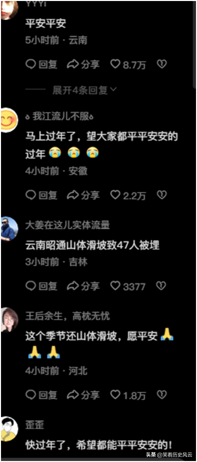 网友纷纷发出祈愿:"平安平安""快过年了,希望大家都平平安安的""祈祷被埋人员平安,生还"