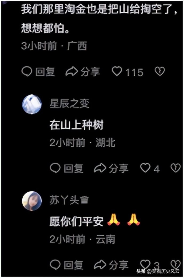 还有网友说:我们那里淘金也是把山给掏空了,想想都怕。