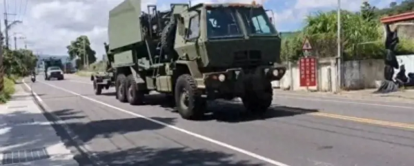 27日下午,台媒报道说,有多辆导弹发射车组在台东公路上驶过,它们被疑在"追监"解放军的联合战备警巡。