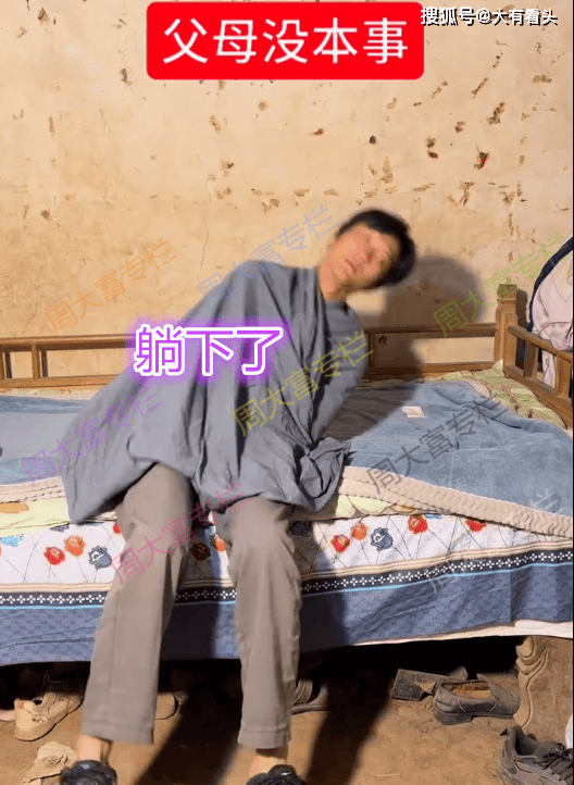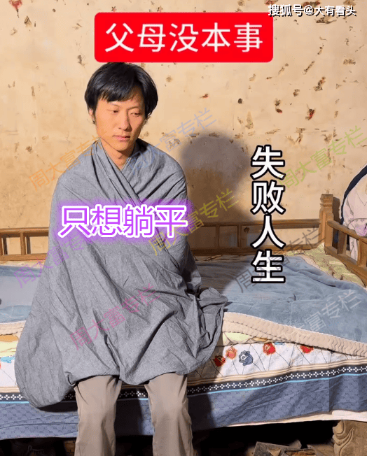 男子吃完饭,也不出去干活,就裹着大被子躺在床上睡觉,他的理由是老爸是躺平了,自己也要躺平,这才是真正的父子