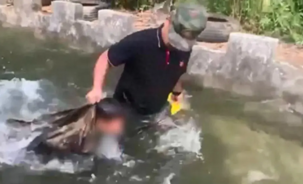 视频内容震撼人心。画面中,一个身穿迷彩服的教官站在水池边,单手抓住男孩的衣领,将其头部反复按进水中。男孩不断挣扎,试图从水中挣脱出来,但每次都被教官再度按下去。视频中的教官表情冷峻,似乎是在进行一种严格的训练,而男孩的表情则显得痛苦和恐惧。