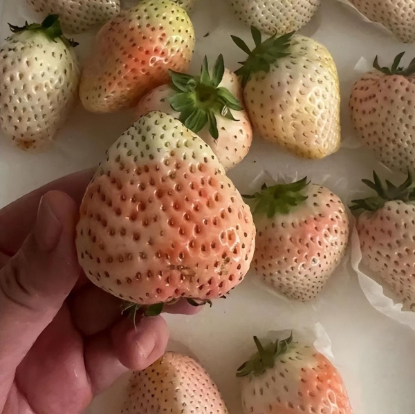 据了解,日本培育的草莓品种多达200多种,不过最受欢迎的还要数白草莓,白草莓是草莓界的"爱马仕",因白中透粉、香甜可口深受喜爱。