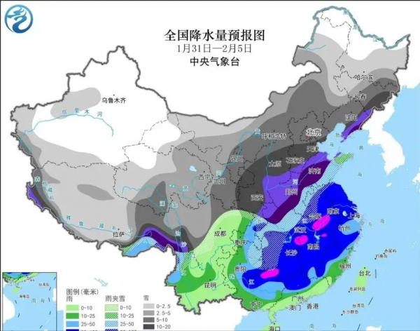 当前时间为2024年1月29日星期一。受西南暖湿气流和冷空气共同影响,预计1月31日至2月4日我省将出现一场持续的大范围降雨雪天气过程。
