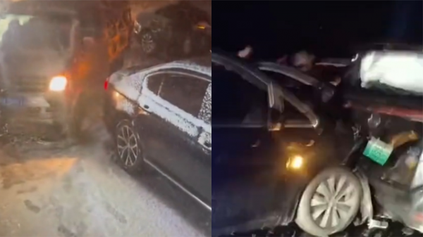 河南连霍高速车祸多车连环相撞:雪天结冰路滑,交警已到现场处理