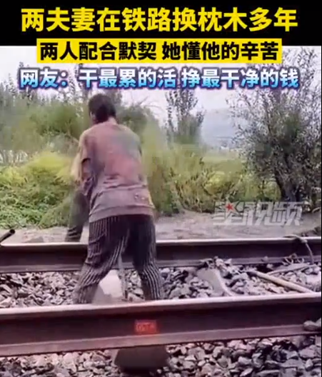 两夫妻在铁路换枕木多年,两人配合默契,她懂他的辛苦。